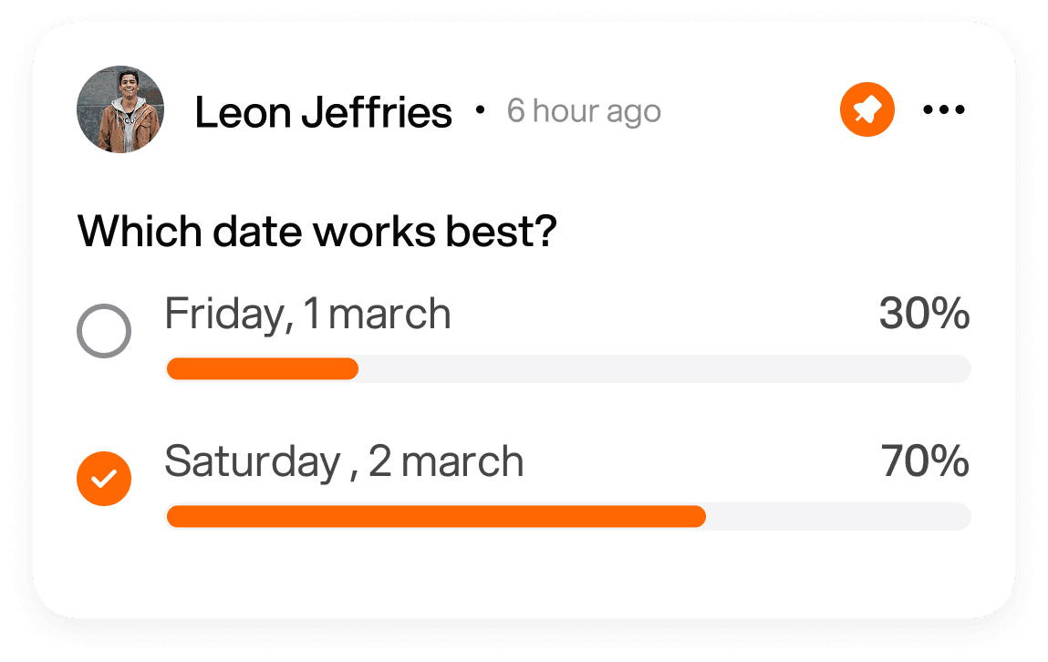 Manage RSVPs. Interact with guests. Personalise your event with a video. Set a budget and manage payments in the app.